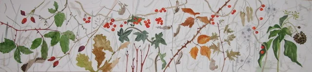 'Hedgewalk - December' watercolour 19 x 86 cms